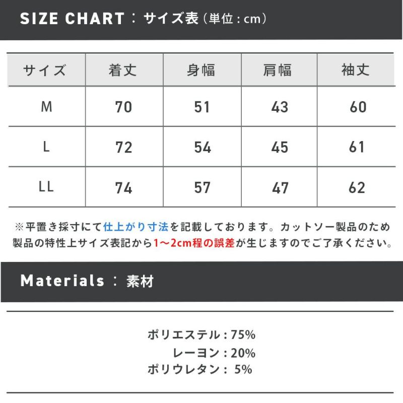 ※カットソー製品のため製品の特性上、サイズ表記より1~2cm前後する可能性があります。