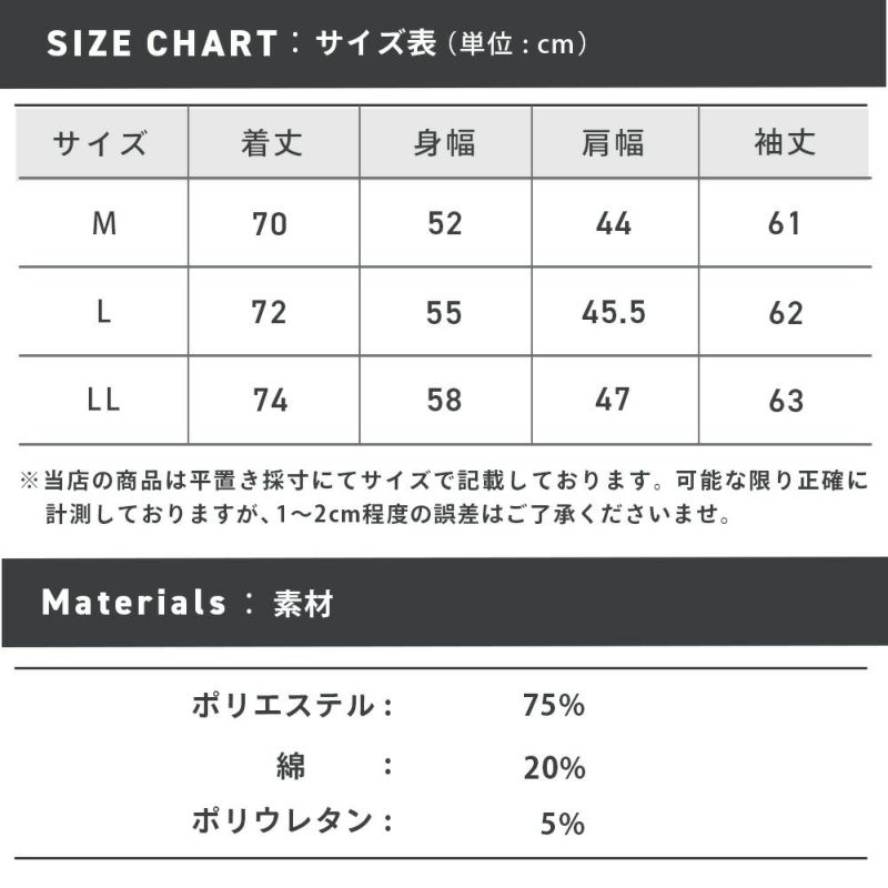 ※商品タグに記載しているサイズ表記はJIS規格であり商品の実寸サイズとは異なります。 ※サイズ表は仕上がり寸法を記載しています。ヌード寸とは異なります。 ※カットソー製品のため製品の特性上、サイズ表記より1~2cm前後する可能性があります。 また、カラーによっても個体差が出る可能性があり、多色買いの際にはカラーによってサイズ感も異なります。 ※サイズ表記より±1~2cmの誤差内である場合は不良品交換・返品として承ることが出来かねますので、カットソー製品に関しまして何卒ご理解ご了承くださいますようお願い申し上げます。
