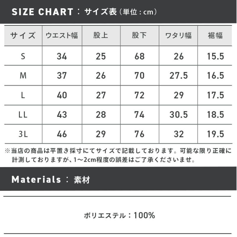 Sから3Lサイズまでの展開で、あなたにぴったりのサイズが見つかります!