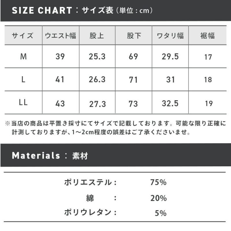※商品タグに記載しているサイズ表記はJIS規格であり商品の実寸サイズとは異なります。 ※サイズ表は仕上がり寸法を記載しています。ヌード寸とは異なります。 ※カットソー製品のため製品の特性上、サイズ表記より1~2cm前後する可能性があります。 また、カラーによっても個体差が出る可能性があり、多色買いの際にはカラーによってサイズ感も異なります。 ※サイズ表記より±1~2cmの誤差内である場合は不良品交換・返品として承ることが出来かねますので、カットソー製品に関しまして何卒ご理解ご了承くださいますようお願い申し上げます。 ※スラックス商品は股上の浅いデザインとなっている為、 くびれに近いウエストではなく、腰の位置のウエストに合わせてご参考ください。