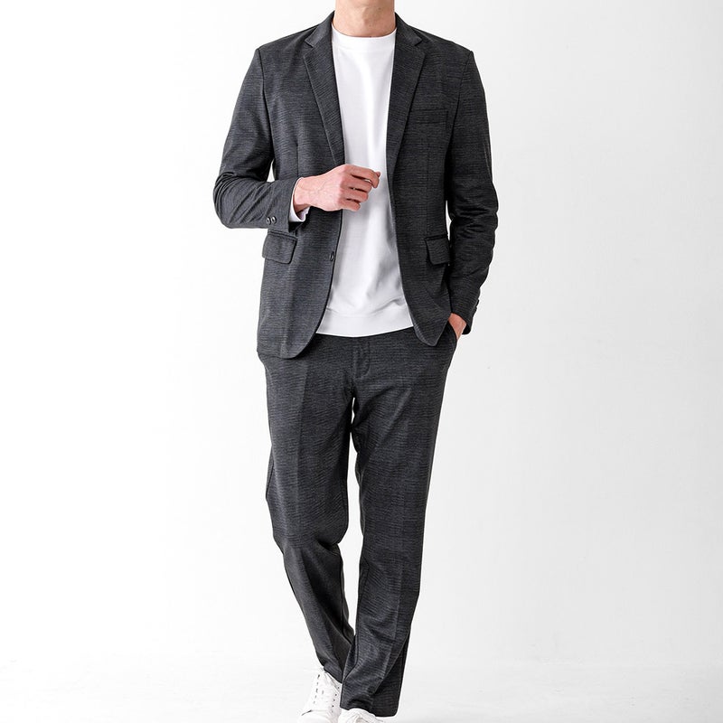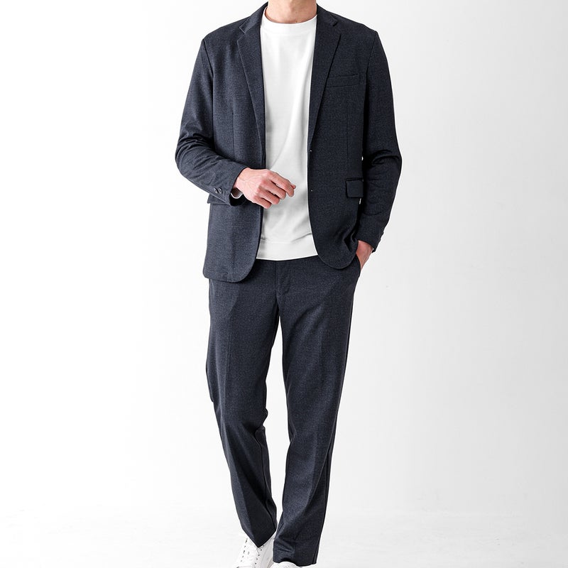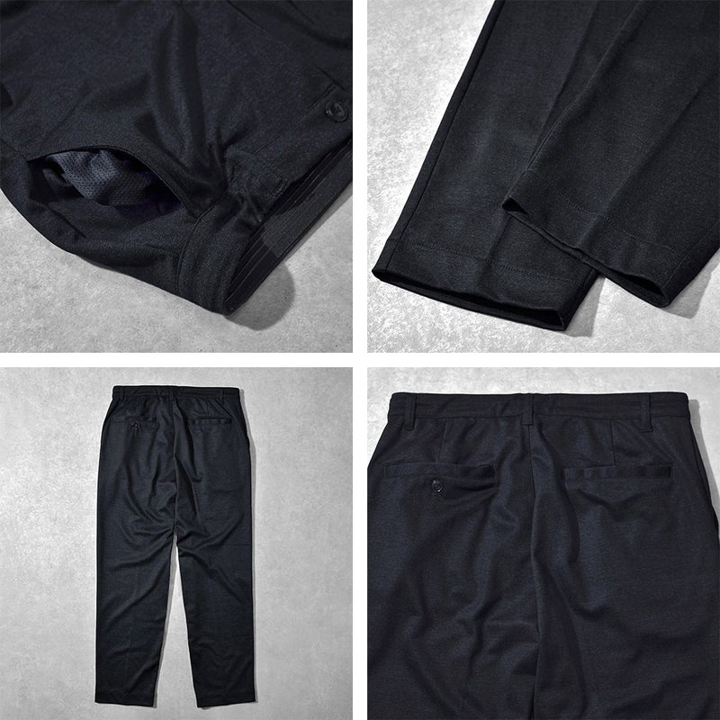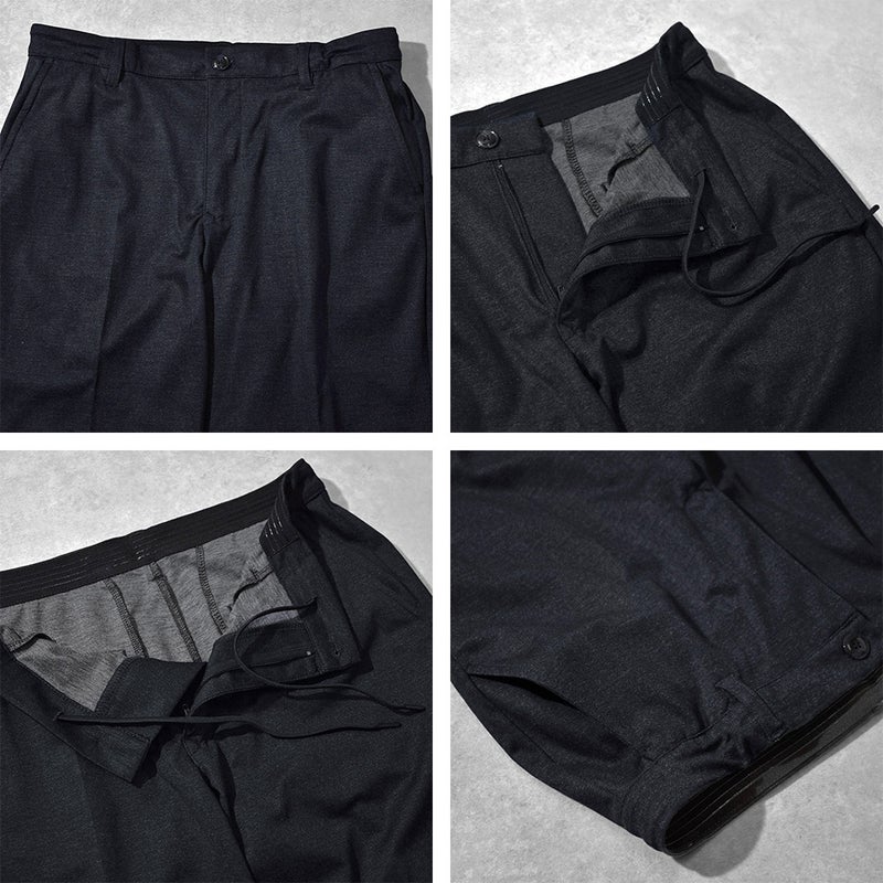 またパンツはマーベルトを採用しギャザーのないウエストゴム仕様のため、 きちんと感のある印象を与えてくれます。