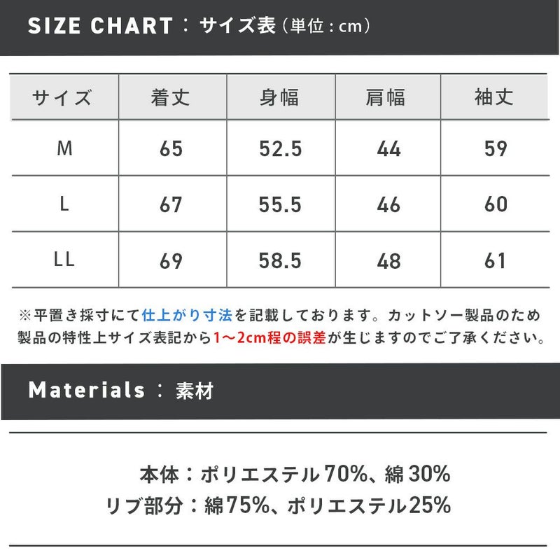 ※カットソー製品のため製品の特性上、サイズ表記より1~2cm前後する可能性があります。
