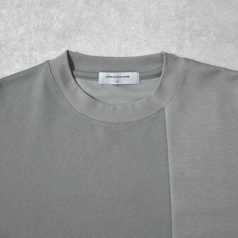 異なる素材を組み合わせた控えめながらも存在感のある長袖切替Tシャツ。