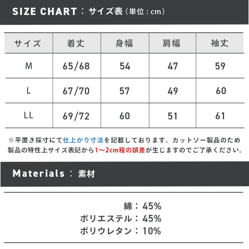 ※カットソー製品のため製品の特性上、サイズ表記より1~2cm前後する可能性があります。
