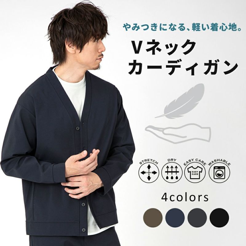 軽い着心地で羽織物が欲しい季節の変わり目にちょうどいい きれいめカジュアルなVネックカーディガン。