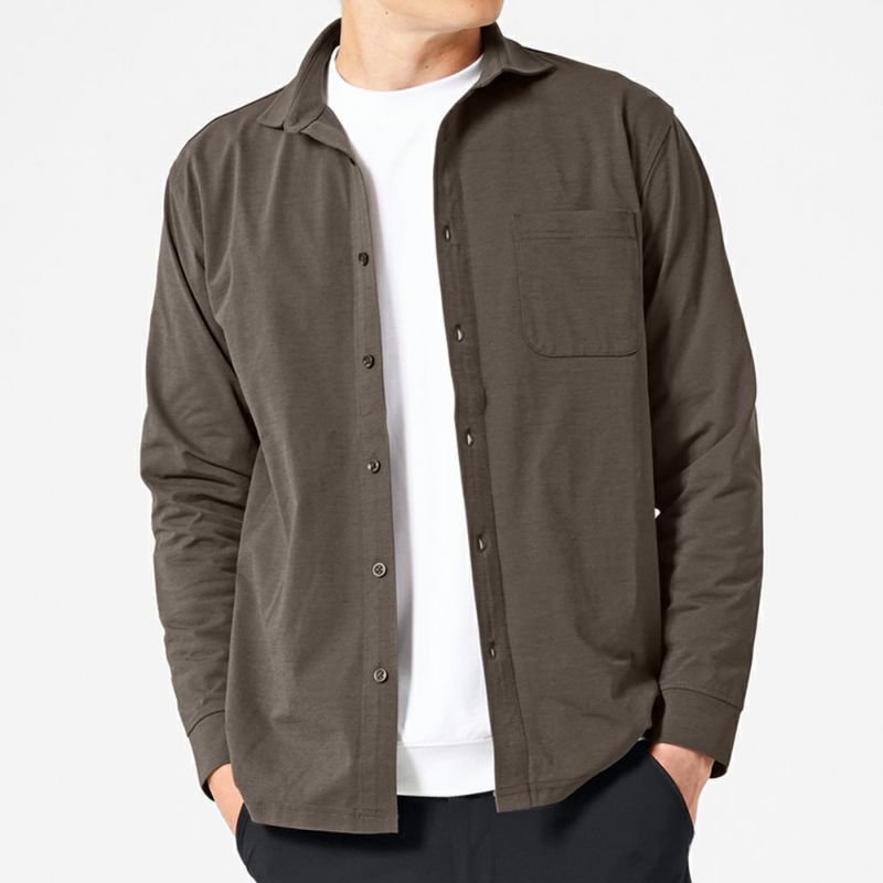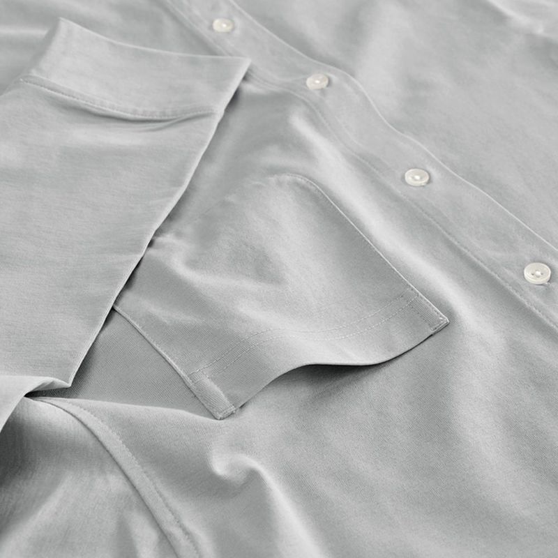 袖口にはボタンがなくTシャツのように着用でき、そのまま腕をまくることも可能です。