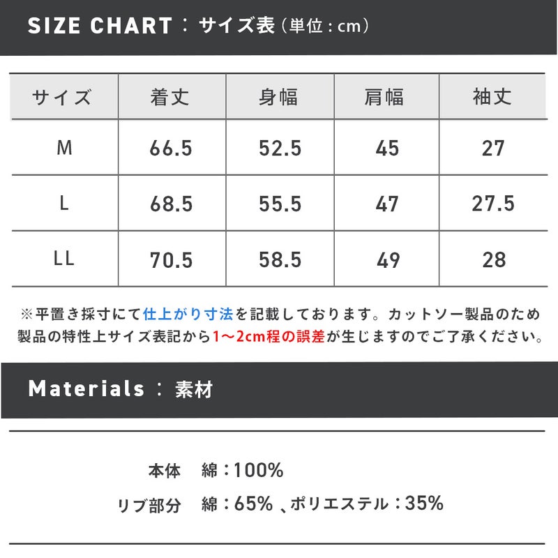 ※カットソー製品のため製品の特性上、サイズ表記より1~2cm前後する可能性があります。 また、カラーによっても個体差が出る可能性があり、多色買いの際にはカラーによってサイズ感も異なります。