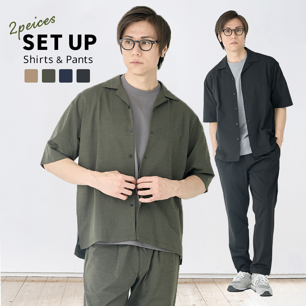 通気性の良い素材を採用し、夏場でも風を通し汗ばむ季節でもさらっと着ていただけるセットアップです。
