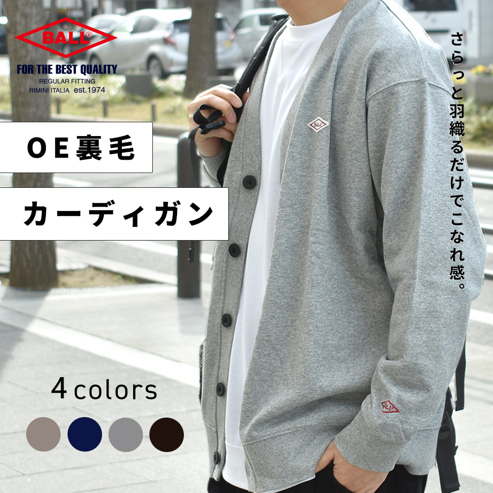 袖口にBALLの刺繍、胸元にワッペンがポイントのカーディガン。 ややゆったりめのデザインで大き目のボタンが カジュアルさを演出するアクセントになっています。 羽織としても、ジャケットやコートのインナーとしても着られるため 幅広いシーズンで活躍間違いなしのアイテムです!