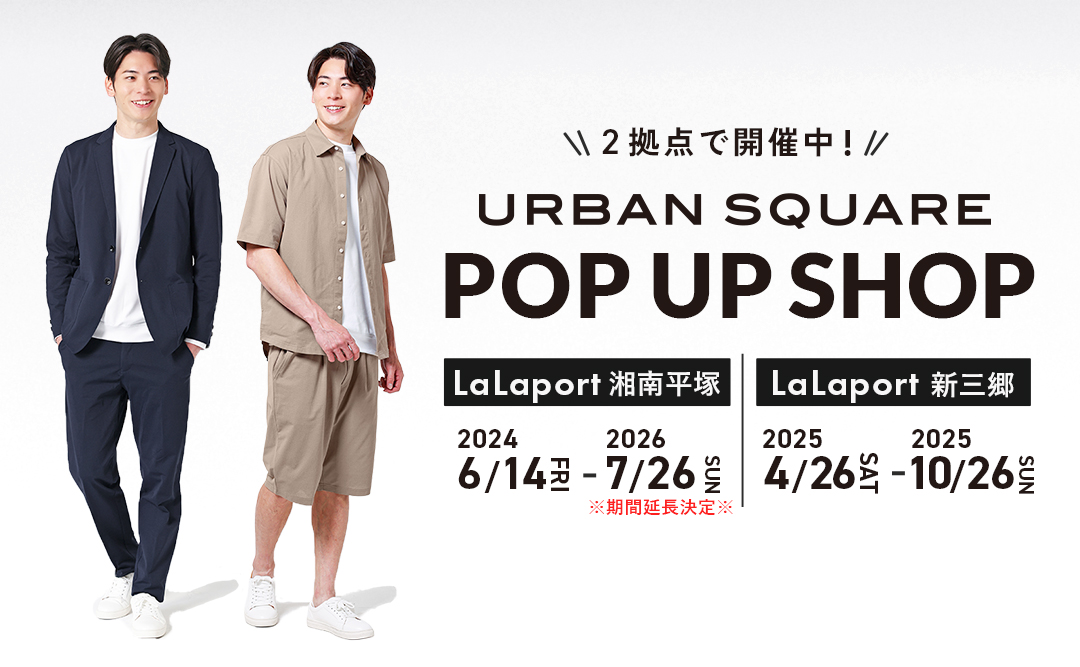 現在URBAN SQUAREポップアップショップが「ららぽーと湘南平塚」と「ららぽーと新三郷」で開催中です!