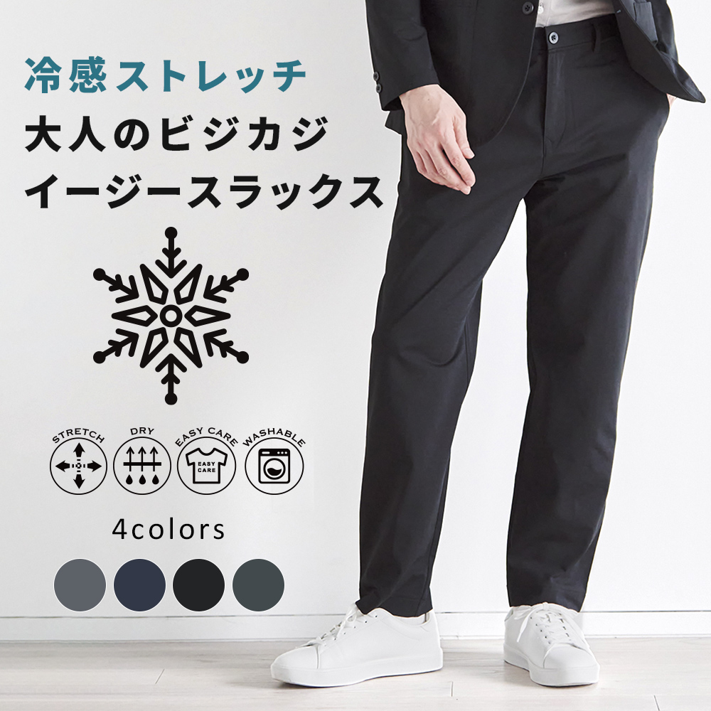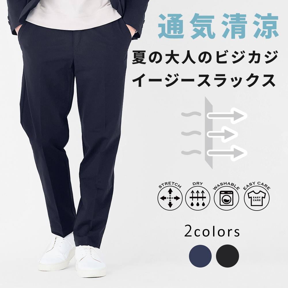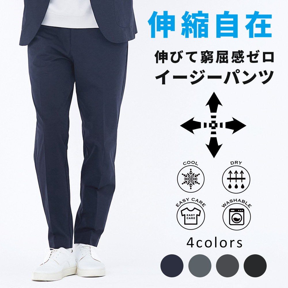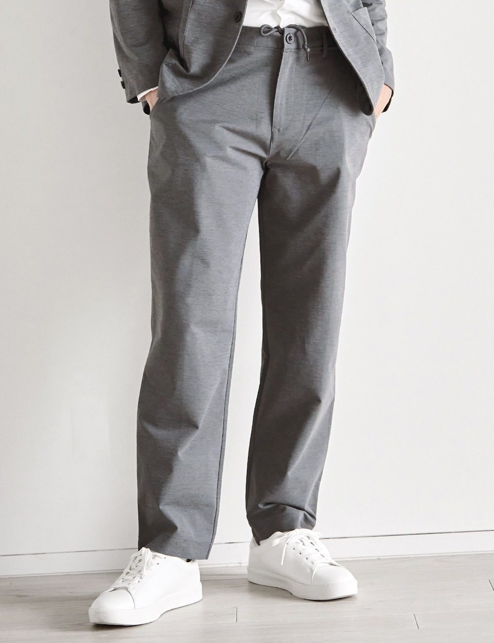 高いストレッチ性で動きやすく、夏場でも涼しく快適に着られるひんやりな 着心地のカジュアルスーツ。しっかりしたハリ感がありきちんと感を演出して くれる生地は、全方向によく伸びる楽ちんストレッチジャージー素材。 さらに家庭洗濯でお手入れも簡単!