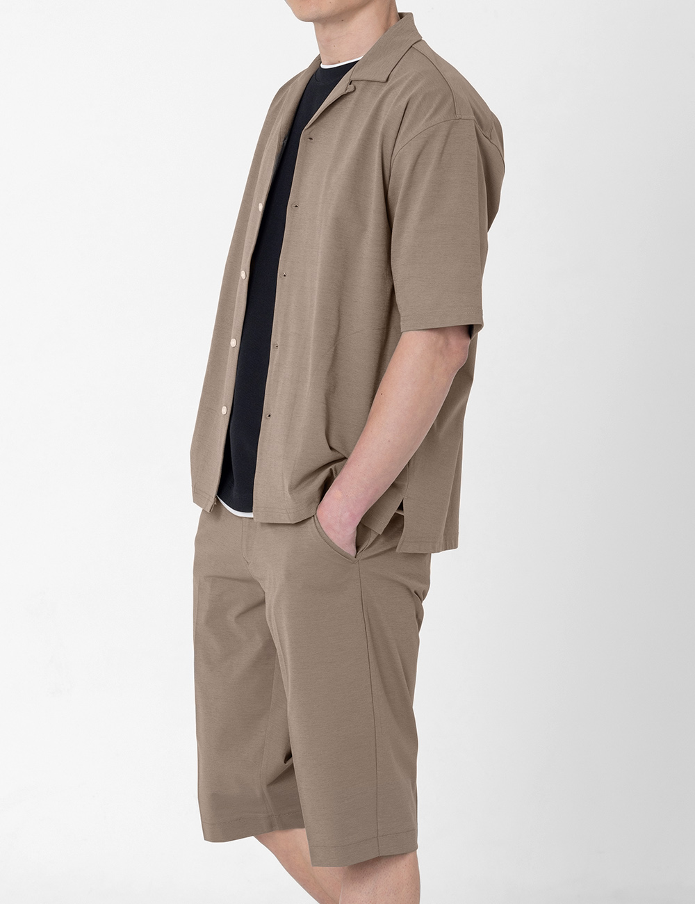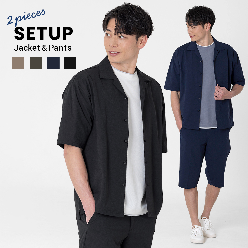 通気性の良い素材を採用し、夏場でも風を通し汗ばむ季節でもさらっと着ていただけるセットアップです。 ベーシックなカラー展開とシンプルなデザインで着回し力も抜群。 お持ちのインナーと合わせて、さっと着るだけでサマ見えコーデが完成します◎ ストレッチも効いているので動きやすく、夏のお出かけ着におすすめです。
