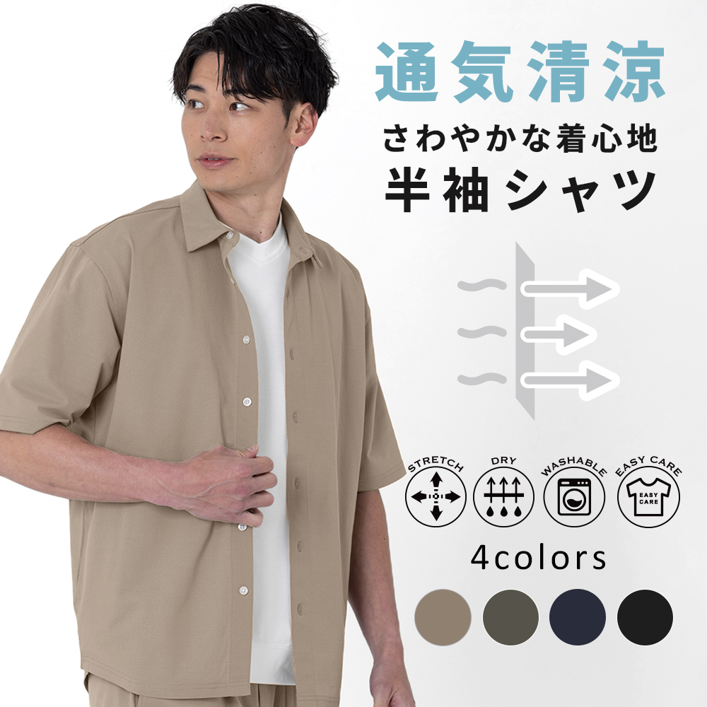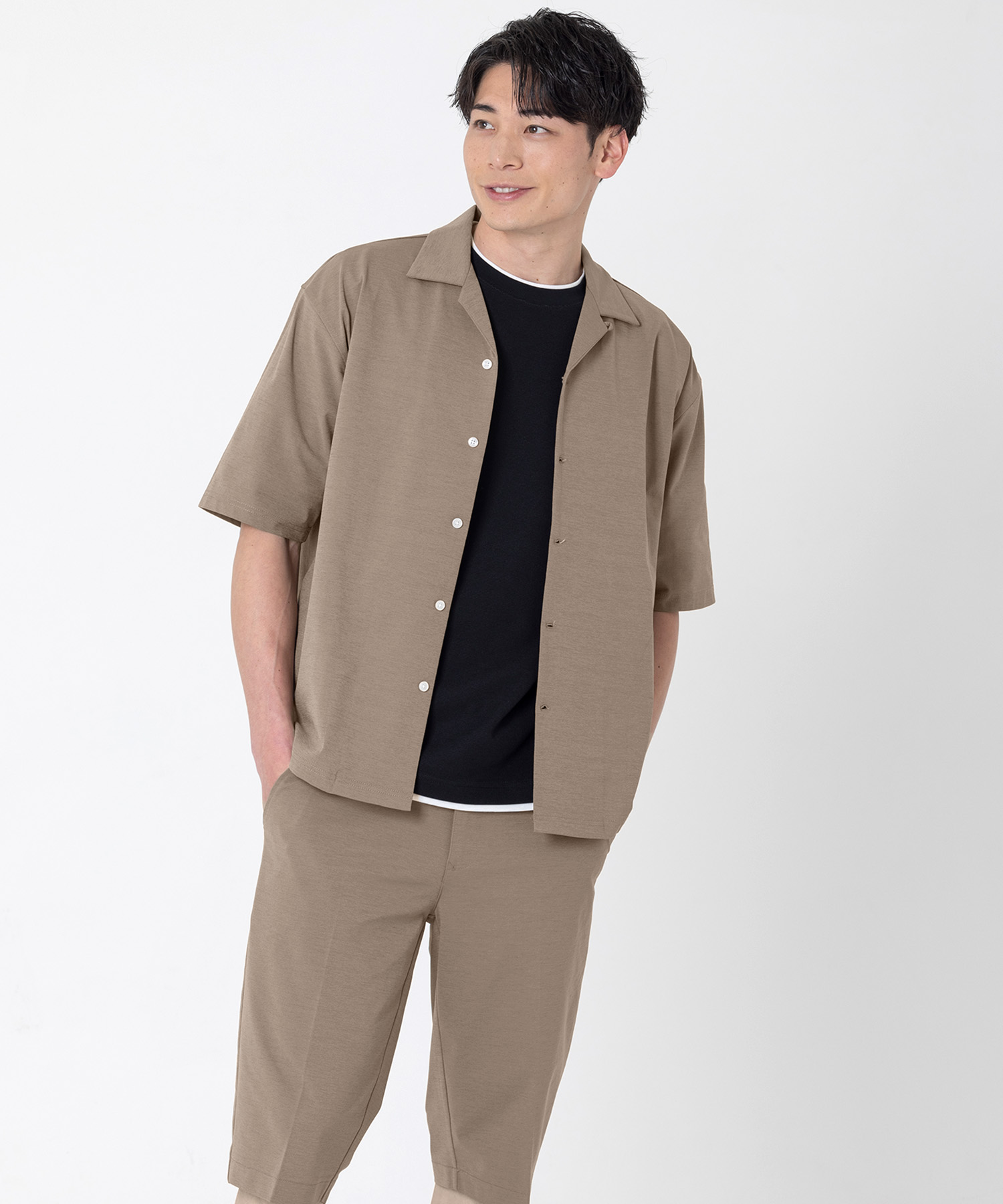 夏のお出かけ着にぴったりのセットアップです。 さらっと羽織るだけでおしゃれ度アップな、半袖タイプのオープンカラーシャツ。 ラクチンな動きやすさが魅力のワンタックデザインな、イージーパンツ。 汗ばむ季節でも爽やかで快適な着心地を楽しめます◎ シワになりにくい素材で、自宅でのお手入れも簡単です♪