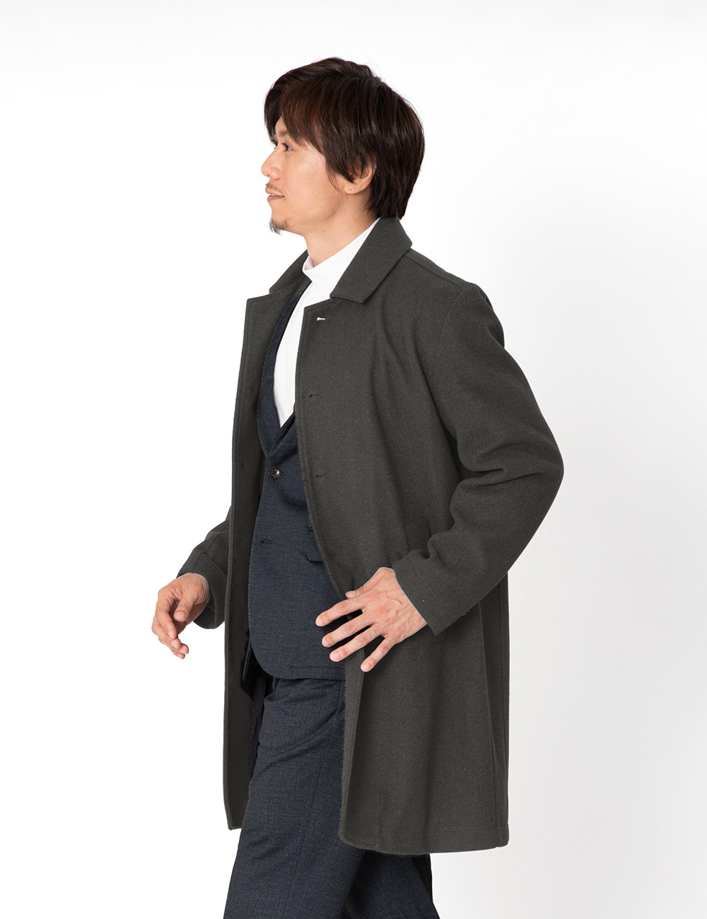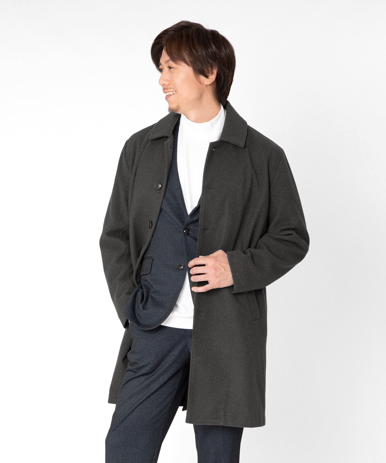 手触りや風合いがウールのように滑らかな、 メルトン素材のアウター。ビジネスシーンで 活躍できるステンカラーコートですが、 セーターやデニム、チノパンを合わせたり カジュアルにも着こなしていただけます! 大人なきれいめスタイルを仕上げたい方にオススメ。