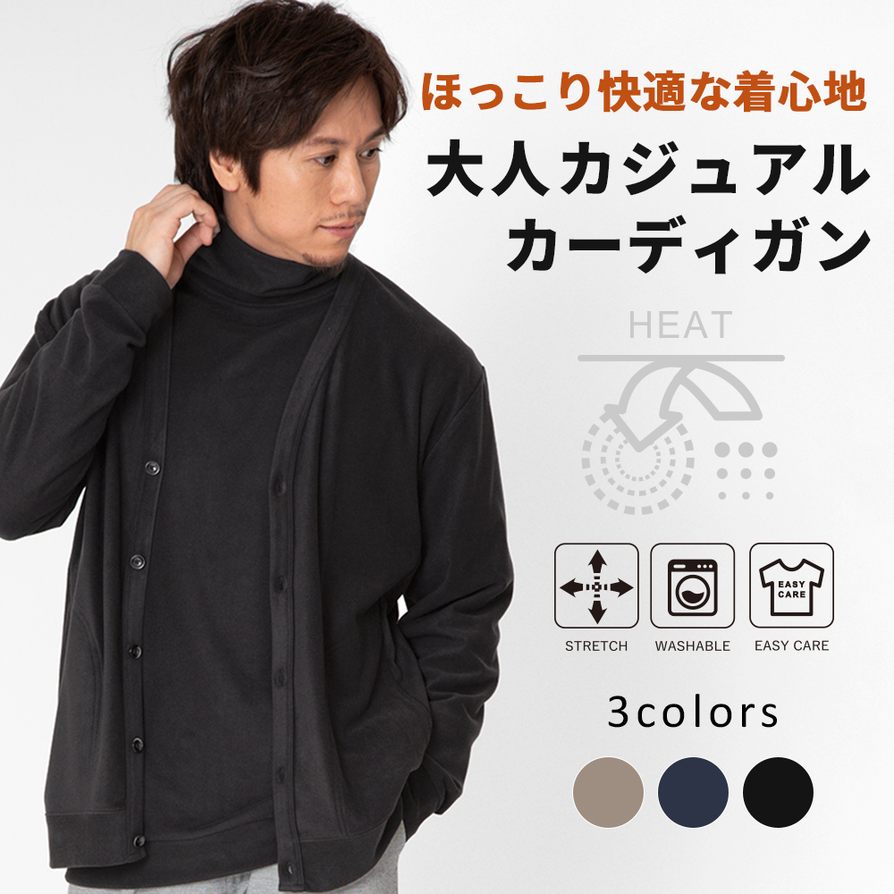肌に触れる面を起毛させることで あたたかく過ごせる保温性があり、ほっこり快適な着心地◎ 首回りをすっきり見せてくれるVネックのカーディガン。 どんなアイテムとも合わせやすく、カジュアルに羽織っていただけます。 ストレッチ性もあるので、ストレスフリーに着用していただけます。