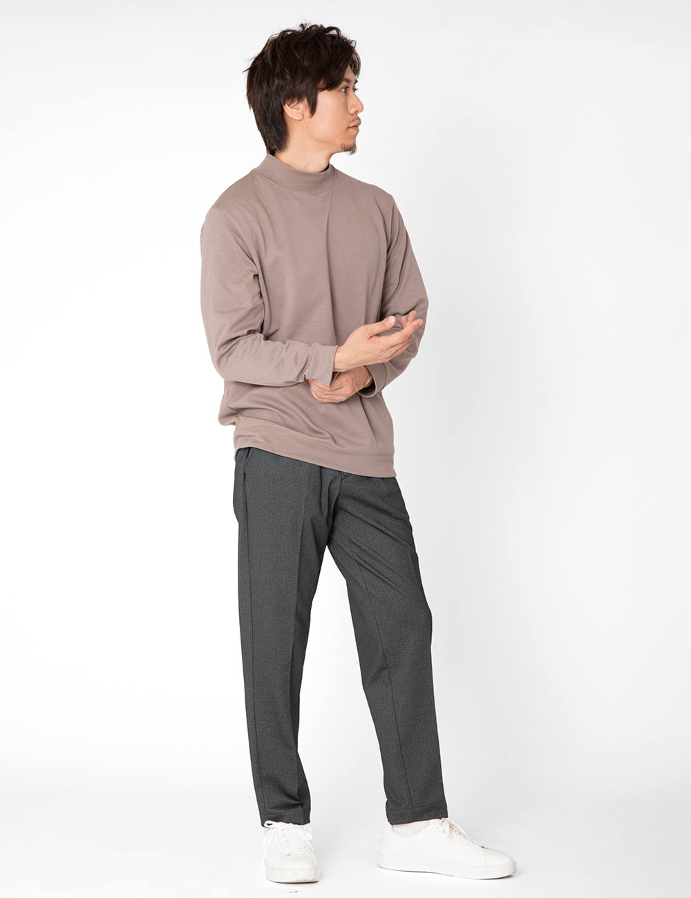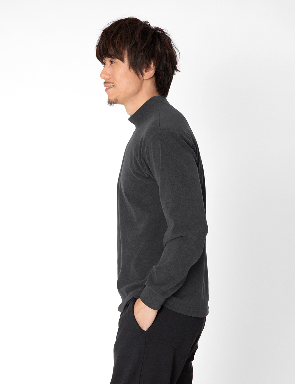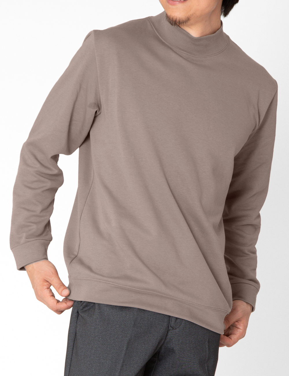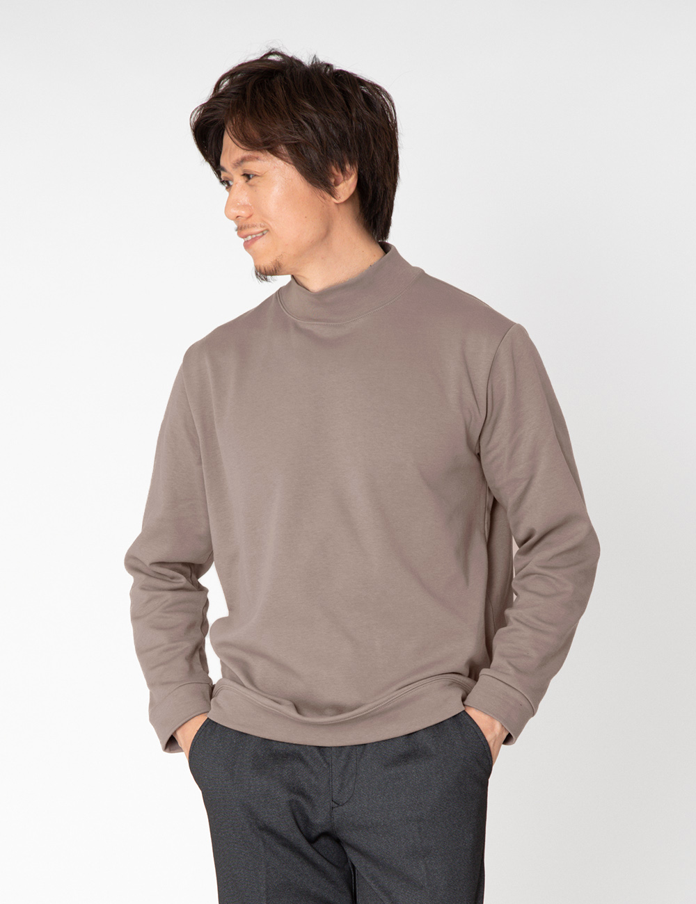 肌に触れる側を起毛させることであたたかく 過ごせる保温性があり、ほっこり快適な着心地。 タートルネックより襟の高さが低いモックネック。 カジュアル~ビジネスカジュアルまで 幅広いシーンで活躍できるアイテムです。