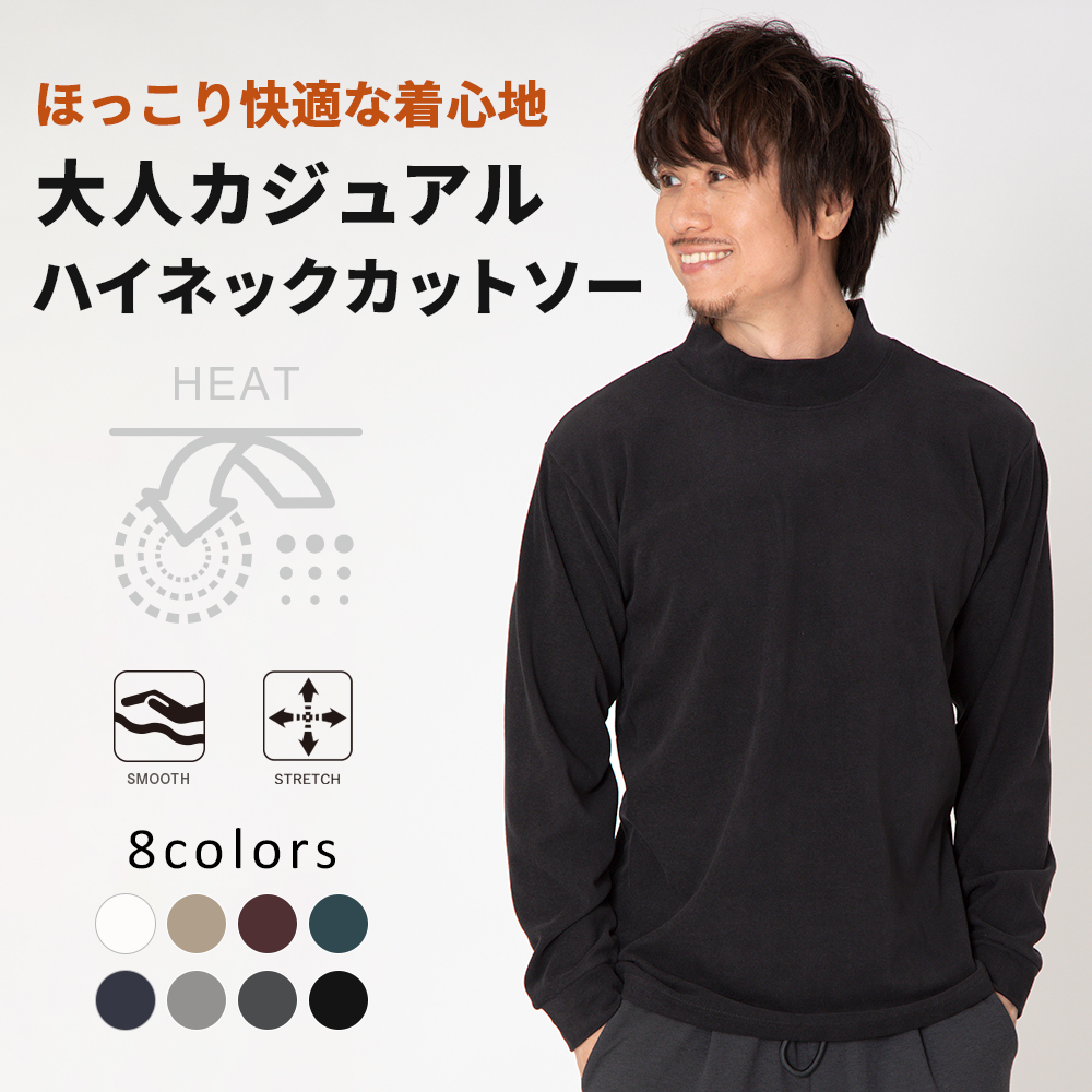 毎日着たくなるほどやみつきになる、 なめらかな肌触りのピーチ起毛。 首元まで暖かいハイネックカットソーです。 まとめ買いに嬉しい、カラーバリエーション豊富なアイテム。 一枚で着るのはもちろん、インナーとしても活躍します。 伸縮性がありストレスフリーな着心地◎ 上品な印象を与える、ONにもOFFにも着られるアイテムです。